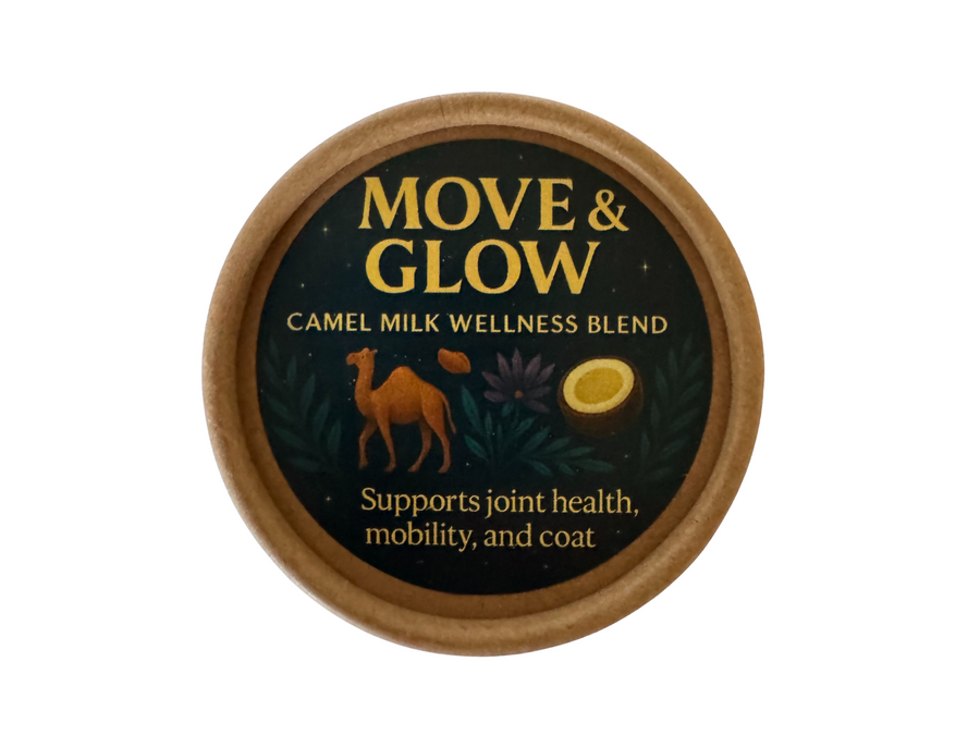 Move & Glow is a daily functional blend designed to support your dog’s gut, joints, and skin, ideal for both active dogs and those needing a bit of extra everyday care.